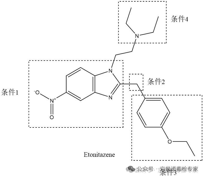 一、尼秦类物质。“尼秦类物质”是指化学结构与依托尼秦(2-[2-(4-乙氧基苄基)-5-硝基-1H-苯并咪唑-1-基]-N,N-二乙基-1-乙胺)相比,符合以下一个或多个条件的物质:(一)使用取代或未取代的1H-苯并咪唑基替代5-硝基-1H-苯并咪唑基;(二)使用取代或未取代的C1-C2烃基替代1H-苯并咪唑基与苯基之间的亚甲基;(三)使用取代或未取代的芳香基团替代4-乙氧基苯基;(四)使用取代或未取代的氨基替代N,N-二乙基氨基。