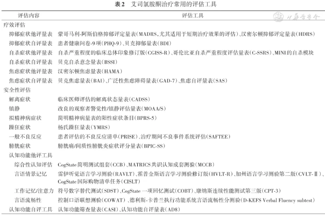 13.艾司氯胺酮治疗常用的评估工具。